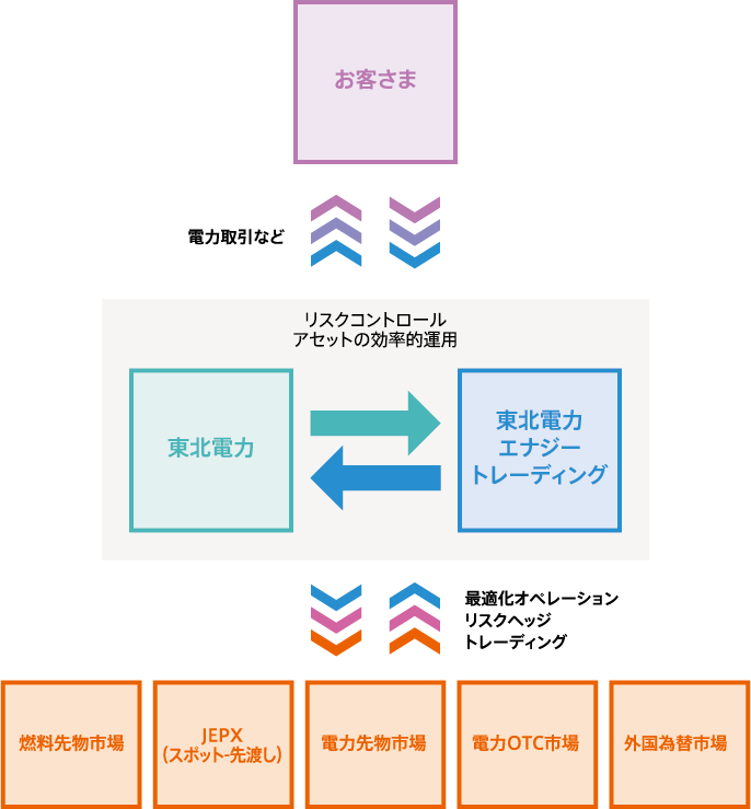 電力・燃料の統合的なトレーディングや金融市場の活用を通じ、事業リスクを的確に管理するとともに、競争力のある電力の調達・供給を目指します。また、新たな事業領域に積極的かつ先見的に対応し、収益力の強化を図ります。